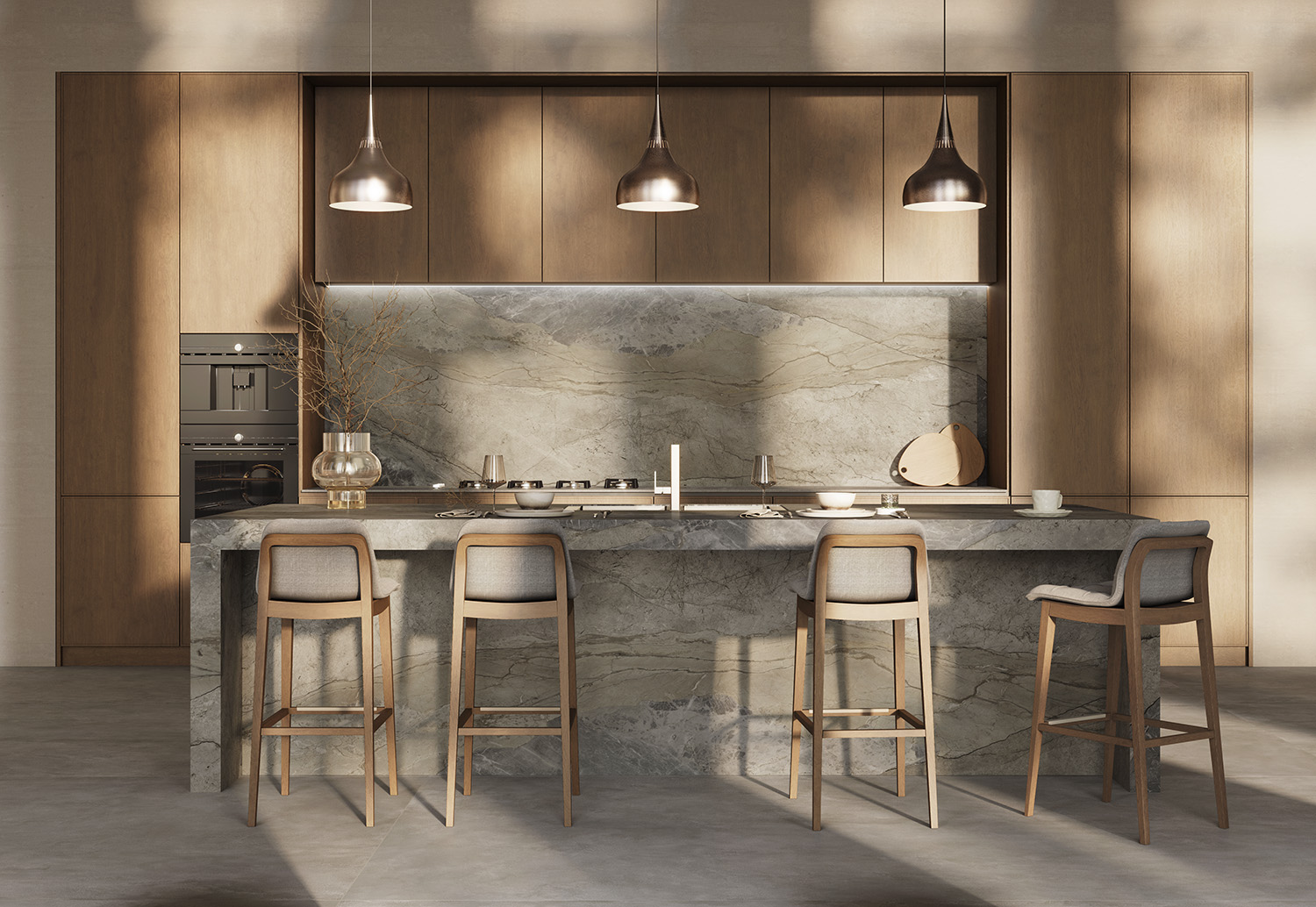 En cuanto a nuevas incorporaciones al catálogo, Appennino Gold, Savanna Terra y Mystic Silver reflejaron el trabajo de Ascale en la reinterpretación contemporánea de piedras naturales a través de la tecnología. Los tres modelos incorporaron una masa altamente técnica con escamas y efecto salt & pepper, reforzando la profundidad visual y la coherencia material de las superficies. Appennino destacó por su acabado Feel con dos relieves; Savanna incorporó tres relieves distintos; mientras que Mystic, disponible en acabado pulido y mate, desarrolló en su versión mate un relieve especialmente diferencial.