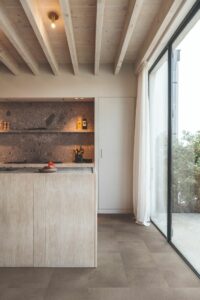 Esta nueva paleta cromática se integra de forma transversal en paredes, textiles, mobiliario y suelos, creando interiores más equilibrados y acogedores. En suelos, las vetas son más profundas y los acabados bien estructurados. Ya no se busca un acabado perfecto, sino honesto y auténtico, que muestre la belleza de lo natural y que el material se sienta al mirarlo y pisarlo.
