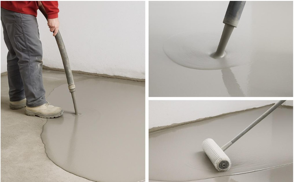 Aplicación: el producto puede verterse manualmente o bombearse, extendiéndose de forma natural. Se recomienda el uso de rodillos de púas para favorecer la desaireación.