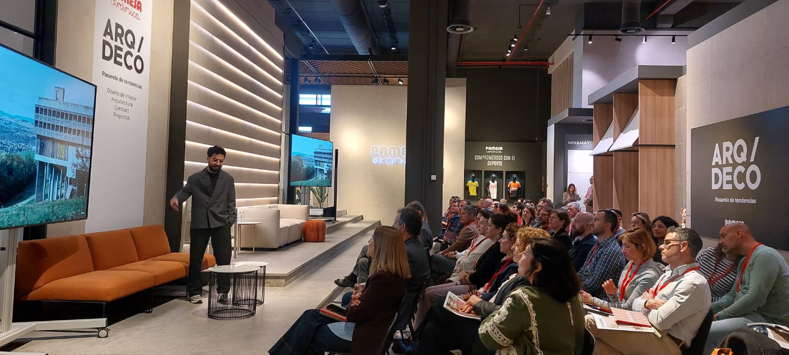 Durante este primer día, que ha contado con una gran afluencia de público, los asistentes han podido descubrir las últimas innovaciones del sector y disfrutar de un completo programa de actividades. Entre ellas, destacaron las ponencias de los estudios invitados, una mesa redonda y un recorrido por las exposiciones del showroom de Pamesa Cerámica, todo ello enmarcado en un entorno de alto nivel profesional.