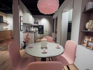 Entre las propuestas de cocinas se encuentran soluciones pensadas para un uso real y cotidiano del hogar, como, por ejemplo, cocinas que fomentan una mayor interacción con los más pequeños y su disfrute también en este espacio; cocinas adaptadas para convivir con mascotas y su integración en ellas; así como una zona específica de lavandería, que amplía el concepto tradicional de
