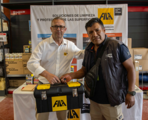 Como valor añadido a la jornada, se realizaron sorteos entre los asistentes que contribuyeron a dinamizar el evento y fomentar la participación. Entre ellos destacó el sorteo de un completo maletín de limpieza profesional de FILA SOLUTIONS, muy bien recibido por el público, que puso en valor la calidad y especialización de los productos destinados al cuidado y mantenimiento de superficies.
