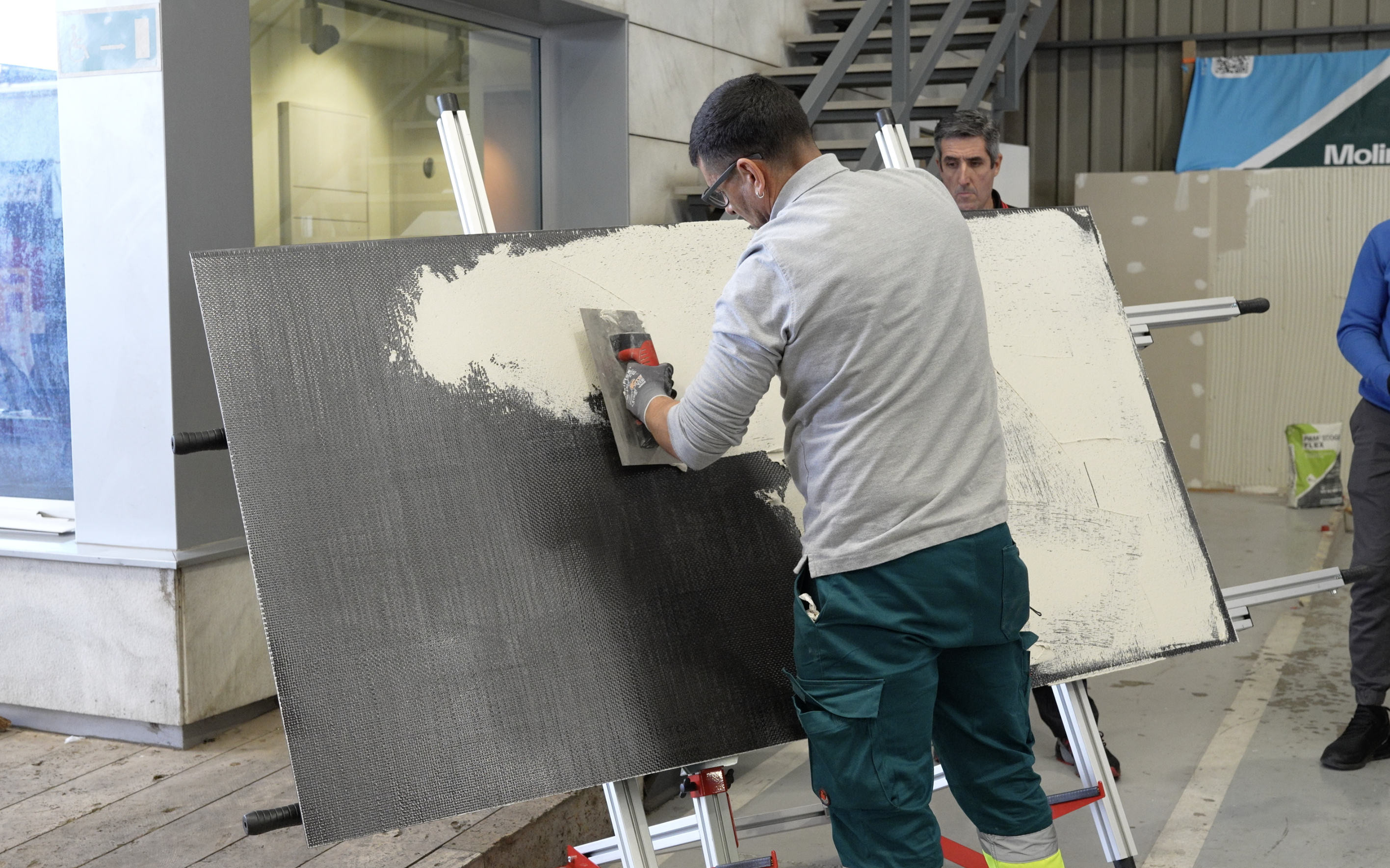 Josete no solo aporta años de experiencia práctica en obra, sino también una capacidad única para conectar con los asistentes, explicando de forma clara y directa las técnicas más avanzadas del sector. Su enfoque práctico y cercano lo ha convertido en una figura destacada en el ámbito de la colocación de gran formato, ganándose la confianza de la comunidad profesional y consolidándose como un referente imprescindible para quienes buscan perfeccionar sus habilidades.