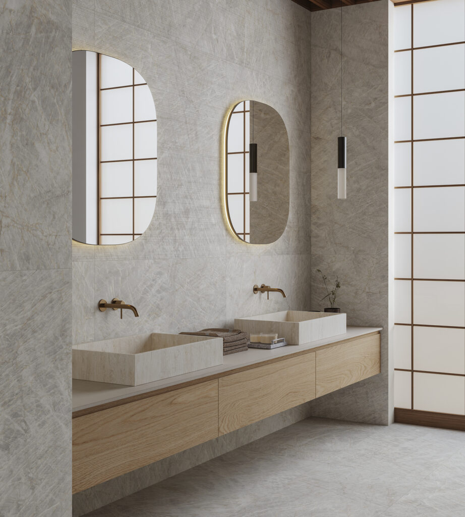 Con un enfoque renovado y vanguardista, estas cinco colecciones de porcelánico reinterpretan el concepto de superficie cerámica. Infinity y Moonstone encarnan la sofisticación contemporánea de las piedras técnicas; Vero Roma y Campastone evocan la calidez atemporal de los materiales arquitectónicos ancestrales; mientras que Taj Mahal se erige como una de las expresiones más actuales dentro de la familia del mármol natural.