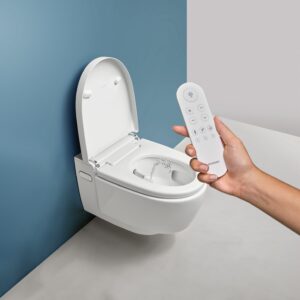 También ofrece otras ventajas como la función de ducha oscilante y la posibilidad de ajustar y regular la intensidad del chorro de agua, la posición del brazo-ducha y la temperatura del agua de la ducha. Su función de descalcificación alarga la vida útil del inodoro bidé. Todo ello se controla fácilmente desde un práctico mando a distancia o desde la App Geberit Home.