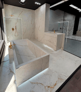 La primera es un sistema de corte ecológico que reduce entre un 90% y un 95% el consumo de agua y elimina las partículas en suspensión, inclusive las nebulizadas, protegiendo así la salud de los trabajadores. La segunda, un bastidor innovador, permite fabricar platos de ducha extraplanos con rapidez, estabilidad estructural e impermeabilidad únicas. Ambas herramientas democratizan el uso de la cerámica sinterizada de gran formato, que además introduce un nuevo método para la manipulación, transformación, transporte e instalación con una característica única: flexan sin romperse.