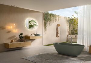 Tanto Villeroy & Boch como Ideal Standard interpretan este estado de ánimo mediante siluetas refinadas, superficies sutiles y un enfoque centrado en el confort sensorial. El resultado es un cuarto de baño que invita a la relajación y la reflexión: moderno, sólido y sereno.