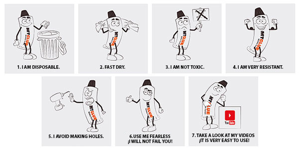 Para utilizar MTGLUE es necesario limar la superficie donde se va a pegar el accesorio con una lija y, posteriormente, pasar una toallita con alcohol, (ambas incluidas con el pegamento). Tendremos que vaciar el adhesivo en un bol y removerlo durante unos segundos. Después, se aplica sobre la pieza a pegar. Por último, hay que presionar la pieza a la pared, dependiendo de la pared, MTGLUE se puede moldear y corregir durante 15 minutos. MTGLUE se seca en dos horas, por lo que no hace falta que el instalador vuelva de nuevo a la vivienda. Tras esto, el nivel máximo de estabilidad se consigue después de 72 horas. Una vez seco, se puede eliminar el exceso de material que haya podido sobresalir utilizando una cuchilla.