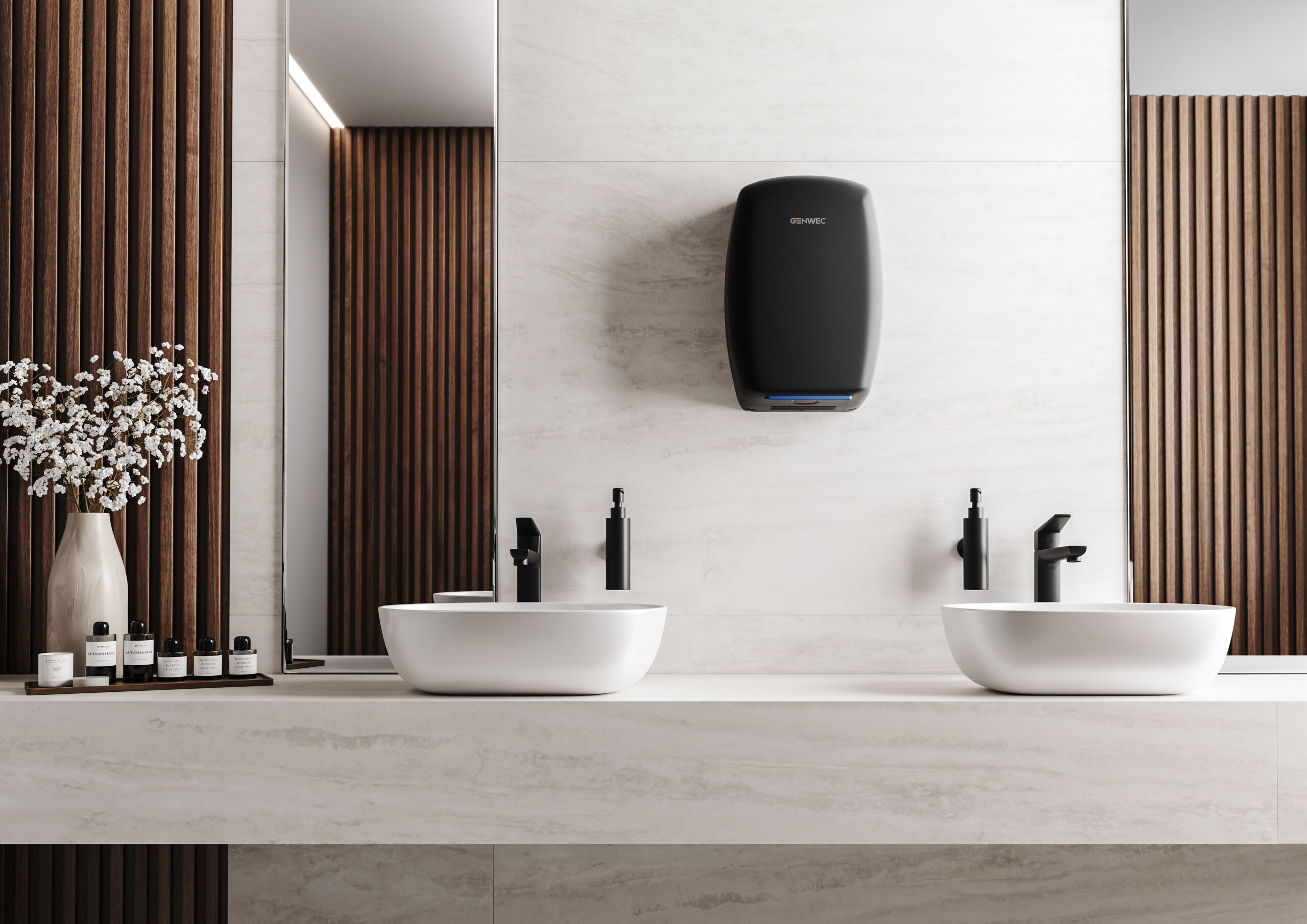 NEO es el novedoso secamanos de Genwec Washroom Equipment & Comp., la división de equipamiento y accesorios para el baño y para colectividades de Genebre Group, la compañía líder a nivel mundial en válvulas y accesorios para el control de fluidos y grifería de alta calidad.