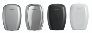 El nuevo secamanos NEO cuenta con cuatro posibles acabados: Inox AISI304 en Satinado (GW01 17 04 01), en Brillante (GW01 17 04 02), en Negro Mate (GW01 17 04 03) y en ABS Blanco (GW01 17 01 00).
