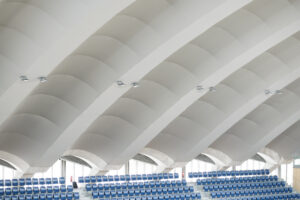 Gracias a la instalación del sistema Ecophon Clipso™, se logró un nivel óptimo de confort acústico, esencial en recintos de gran volumen como el Palacio de Deportes, donde la reverberación del sonido puede afectar negativamente la experiencia tanto en competiciones deportivas como en espectáculos culturales.