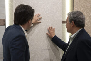 La experiencia digital acompaña el contenido material. En esta edición, TAU refuerza su ecosistema con un catálogo digital más ágil, screenboards de apoyo a la prescripción —para comparar formatos, combinaciones y contextos— y una ‘box’ inmersiva inédita fuera de su showroom, concebida como cámara de ideas en la que ver, a escala y en tiempo real, cómo cambian las superficies con la luz y el uso. Herramientas que no sustituyen a la pieza, pero la explican, y que acortan el camino entre concepto y decisión.