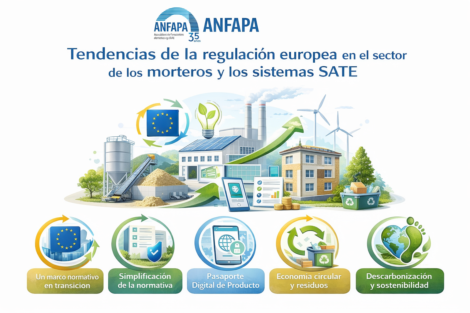 Este entorno normativo en evolución resulta especialmente relevante para el sector de los morteros y de los sistemas de aislamiento térmico por el exterior (SATE), que se encuentra inmerso en un proceso de adaptación futura al nuevo marco regulatorio europeo, aún no plenamente operativo para estas familias de productos.