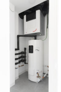 La vivienda cumple con los requisitos de estanqueidad al aire, ausencia total de puentes térmicos, excelente aislamiento térmico, ventilación mecánica con recuperación de calor y ventanas de altas prestaciones, limitando el consumo de energía primaria renovable y generando energía fotovoltaica.